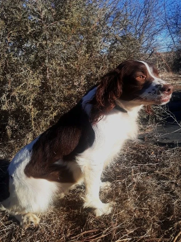 Buddy is an outside stud for us. He is a son of National Amateur Champion Thistle’s Brambles and Briars. Buddy also goes back to National Amateur Champion Pheasant Feather’s Black Powder. Buddy brings an outstanding full skill set with a great temperment! In addition, he brings me back the English linage that I had, and loved, when I first started in spaniels in the late 1980’s and early 1990’s. He brings back the outstanding traits of the English FTCH Badgercourt Druid line through FC Bricksclose Matchwood, who I ran against when I first started field trialing.